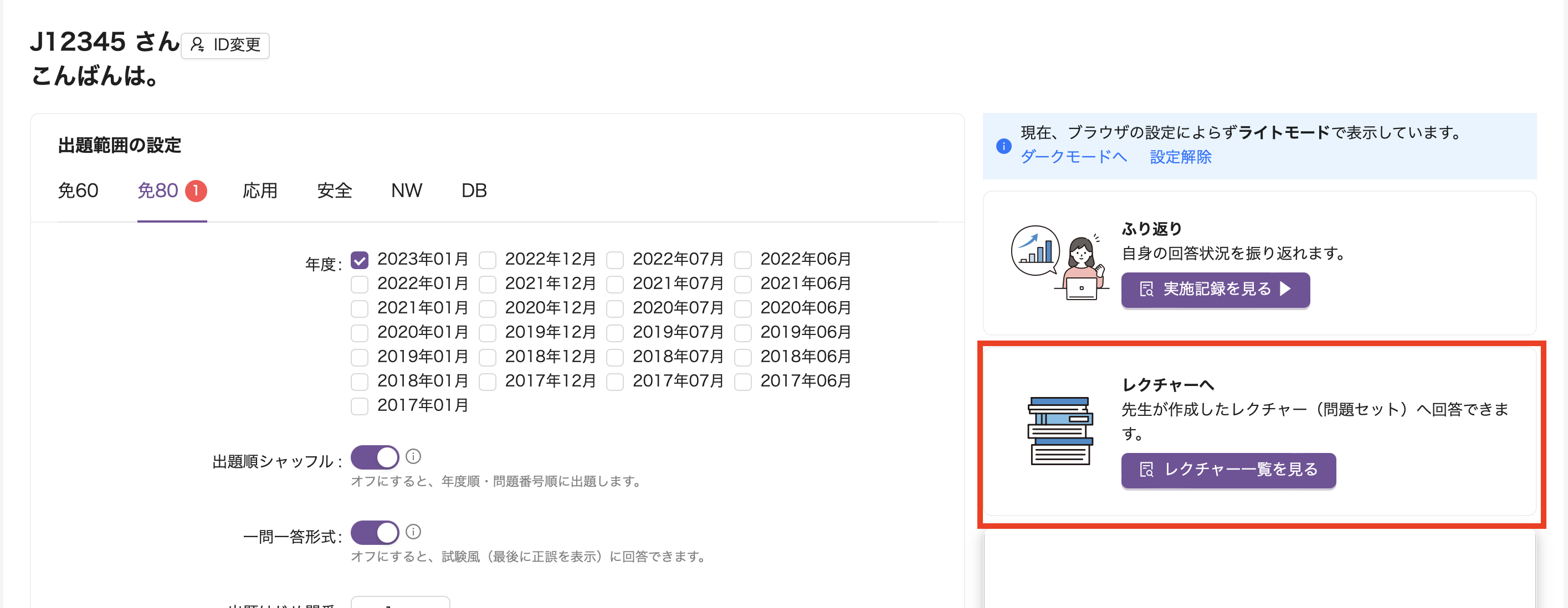 一部のレクチャーは学生が閲覧できないように設定されているかもしれません。あらかじめ、レクチャーIDを先生や友人に聞いておけば、レクチャーに円滑に取り組めます。