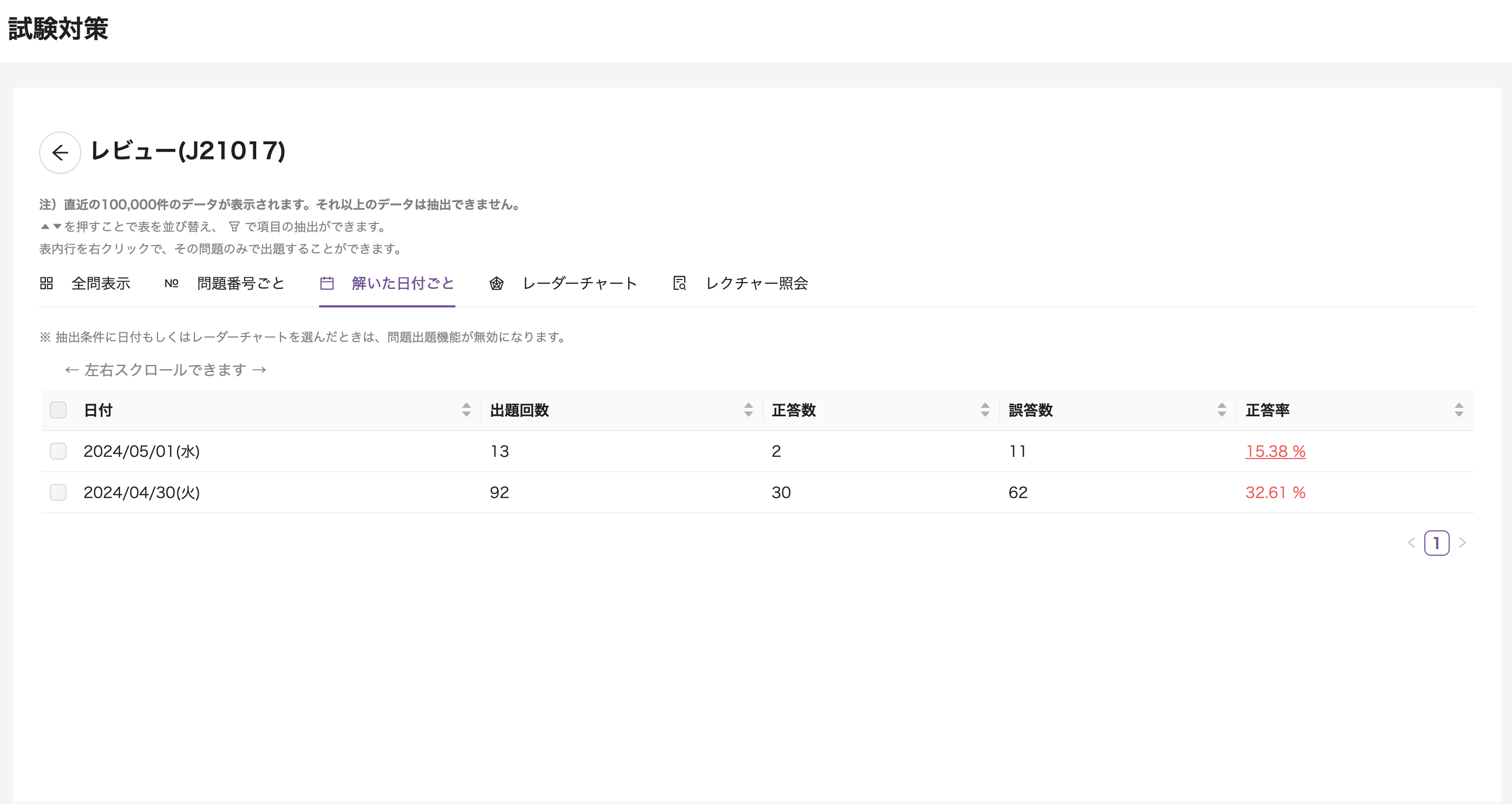 解いた日付ごとに表示します。