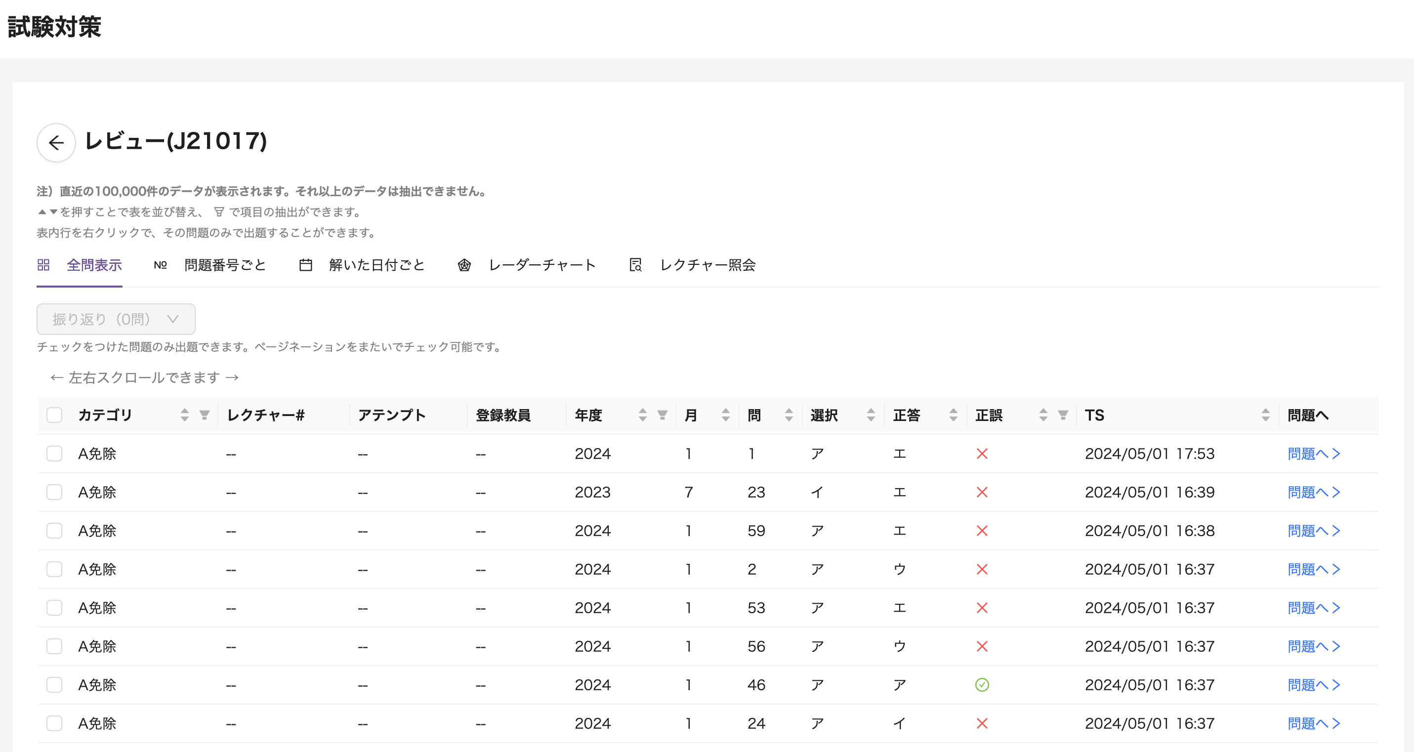 参照する結果は、学生が利用する振り返り画面をそのまま利用しています。 詳細な操作方法については、こちらを参照してください。